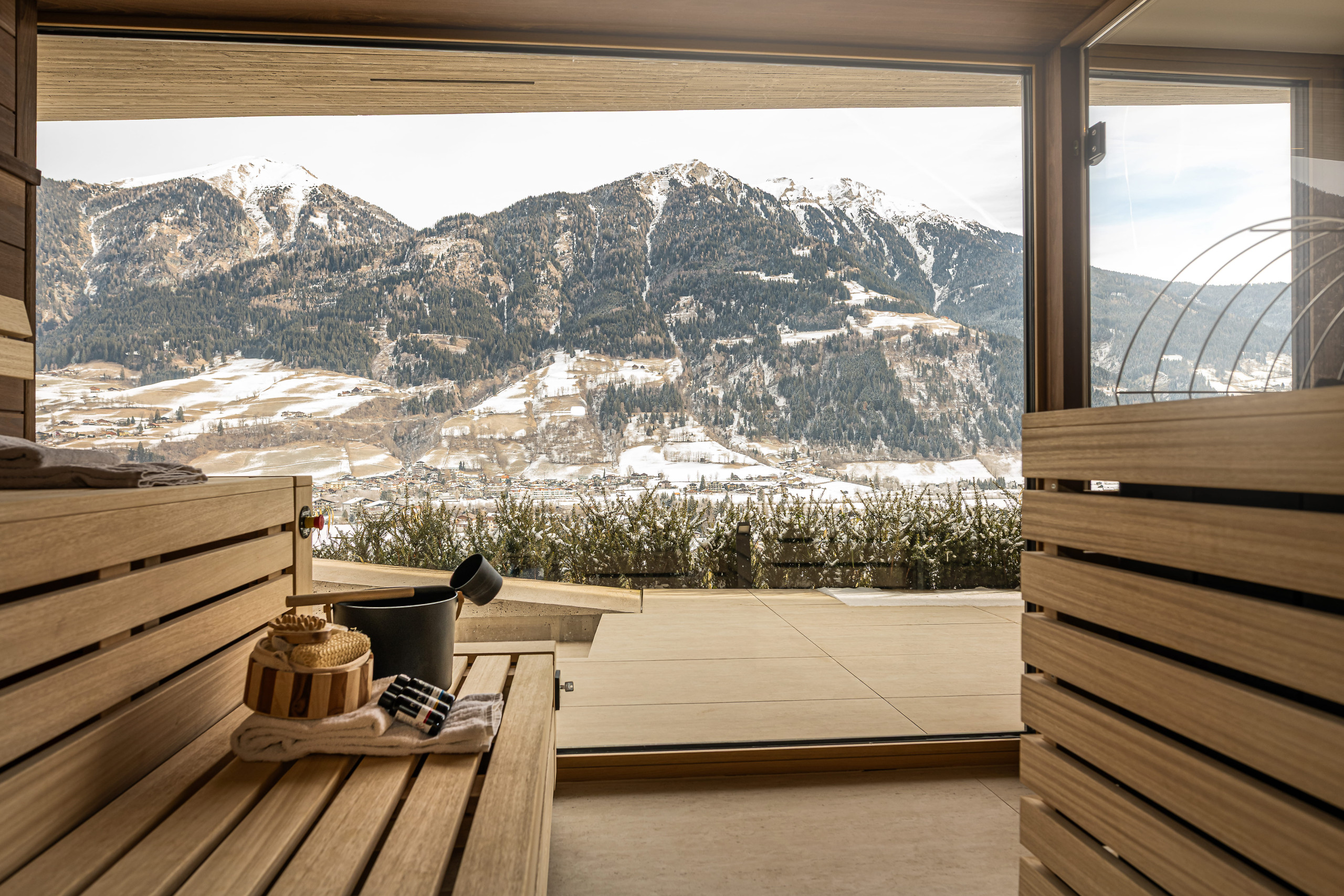 Opening December 2025 – unwind in our brand-new Finnish sauna and wellness area, beautifully designed with natural alpine materials and stunning panorama views.