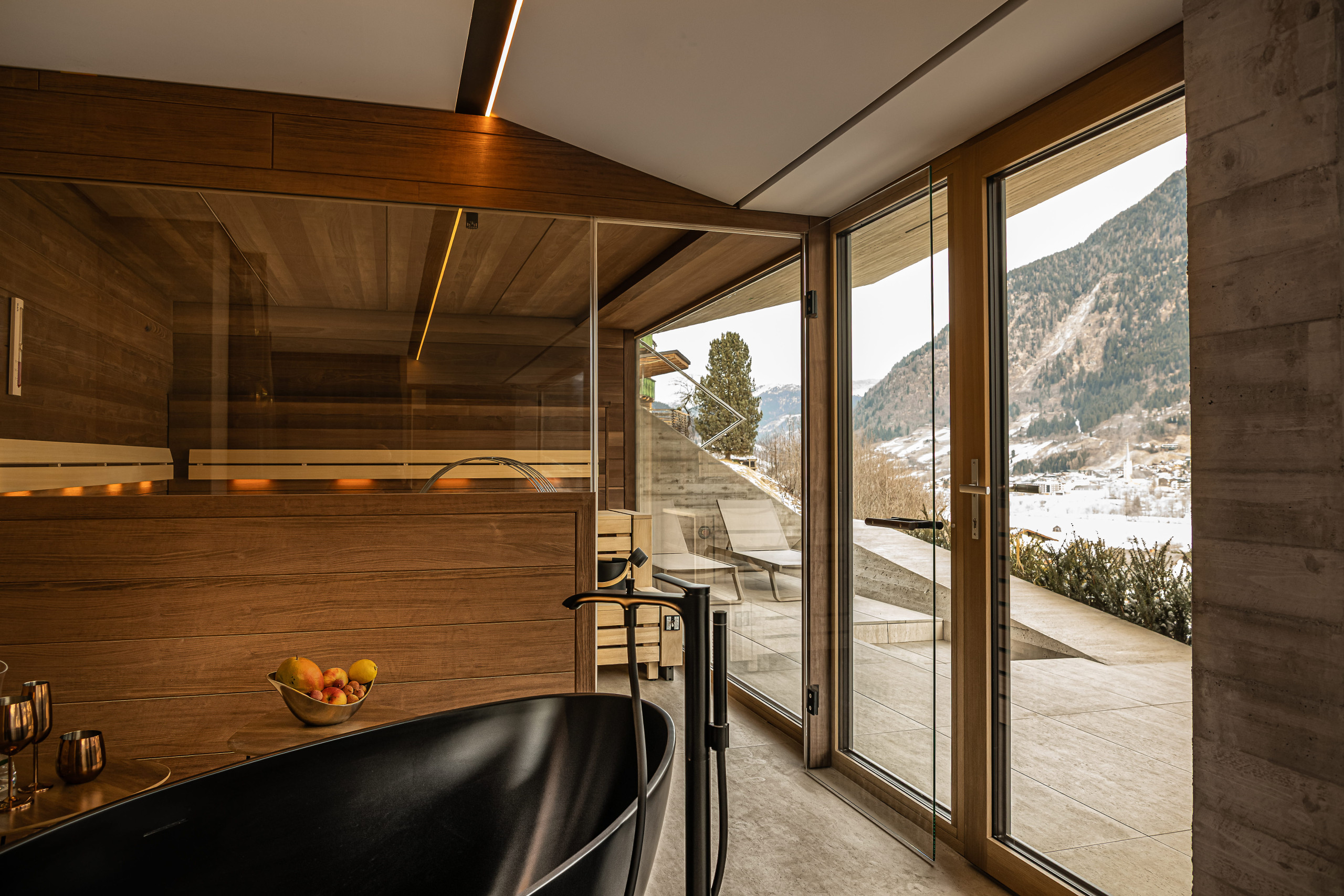 Opening December 2025 – unwind in our brand-new Finnish sauna and wellness area, beautifully designed with natural alpine materials and stunning panorama views.