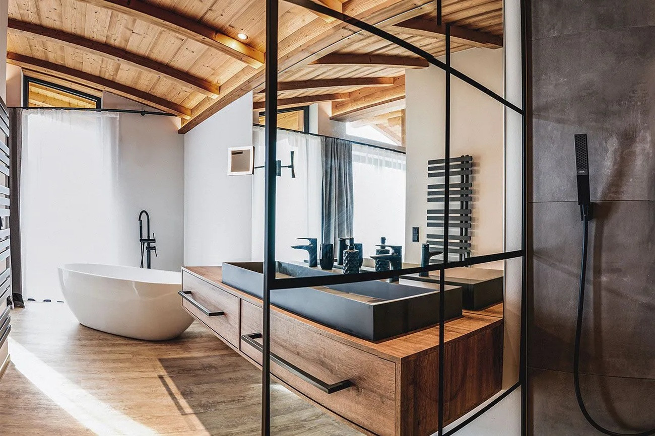 Das Untergeschoss ist vollständig der Erholung und Unterhaltung gewidmet. Ein großzügiger privater Spa-Bereich mit finnischer Sauna, Ruheraum und Fitnessgeräten bietet ideale Voraussetzungen zum Entspannen nach einem aktiven Tag. Für gemütliche Abende sorgt das private Heimkino im Untergeschoss. Freistehende Badewannen in ausgewählten Badezimmern verleihen dem Chalet zusätzlichen Luxus und besonderen Komfort.