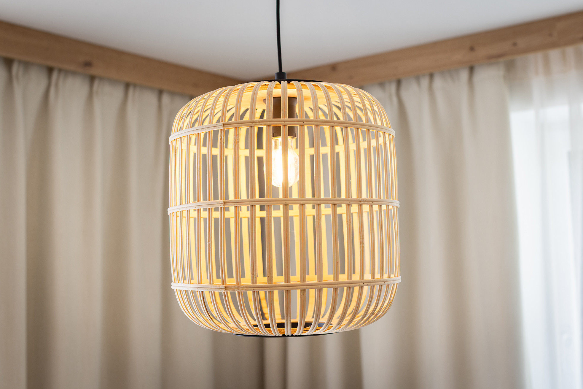 Natürliche Materialien und warme Holzelemente schaffen eine gemütliche Atmosphäre, während das moderne Design für ein angenehmes Wohngefühl sorgt.