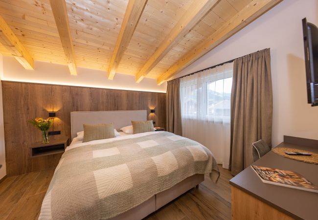 Willkommen im Lennis Apartments Top 5 – ein helles und großzügiges Apartment im obersten Stockwerk mit wunderschönen sichtbaren Holzbalken und herrlichem Bergblick. Die Lage im zweiten Stock verleiht der Wohnung eine besondere Ruhe und ein einzigartiges Wohngefühl.